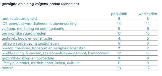 De studie ziet hier een bevestiging van eerdere kritiek van Voka (2019) dat in het volwassenenonderwijs nog te veel opleidingen gericht zijn op vrijetijdsbesteding. Het kan enkel een aansporing zijn om de ingezette shift naar meer flexibele en op de wereld van werk afgestemde opleidingen voort te zetten. Dit sluit ook aan bij de eerdere analyse dat België in dit segment wellicht achterloopt op vergelijkbare landen.